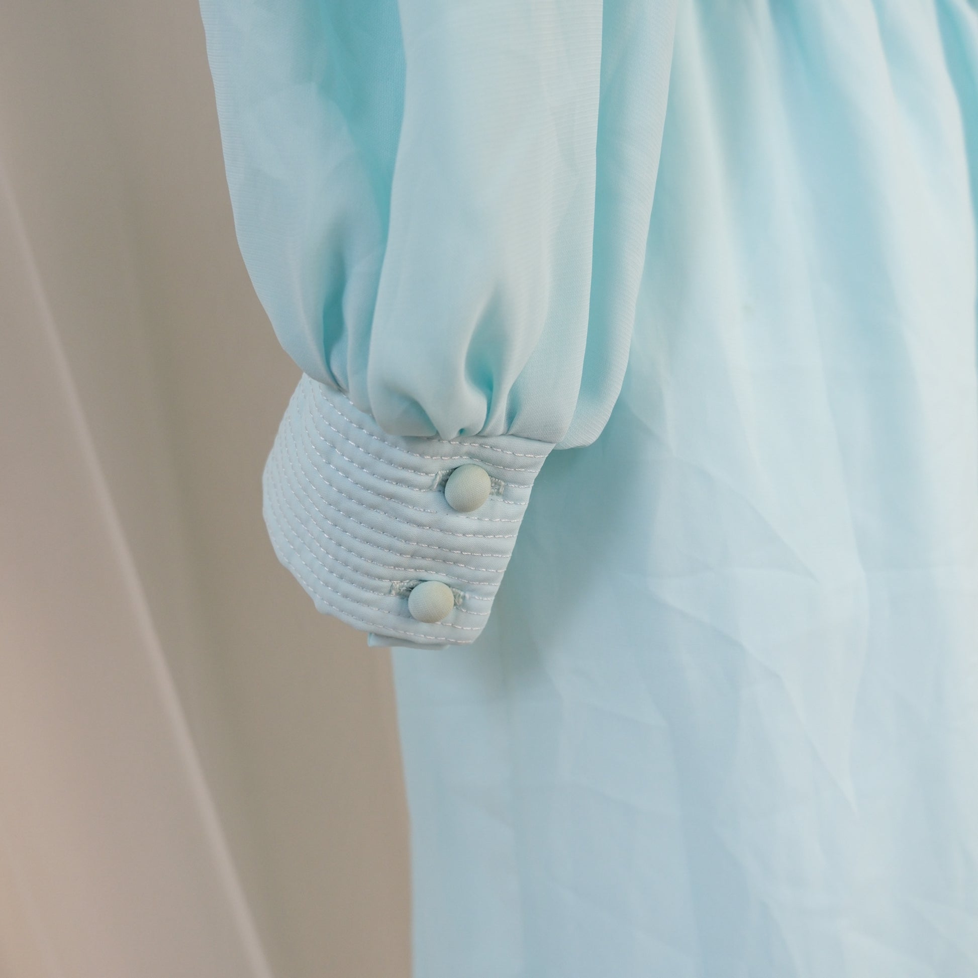 💎 Vintage Sandi Gale Aqua Blue Chiffon Midi Dress – Long Sleeve Romantic Silhouette