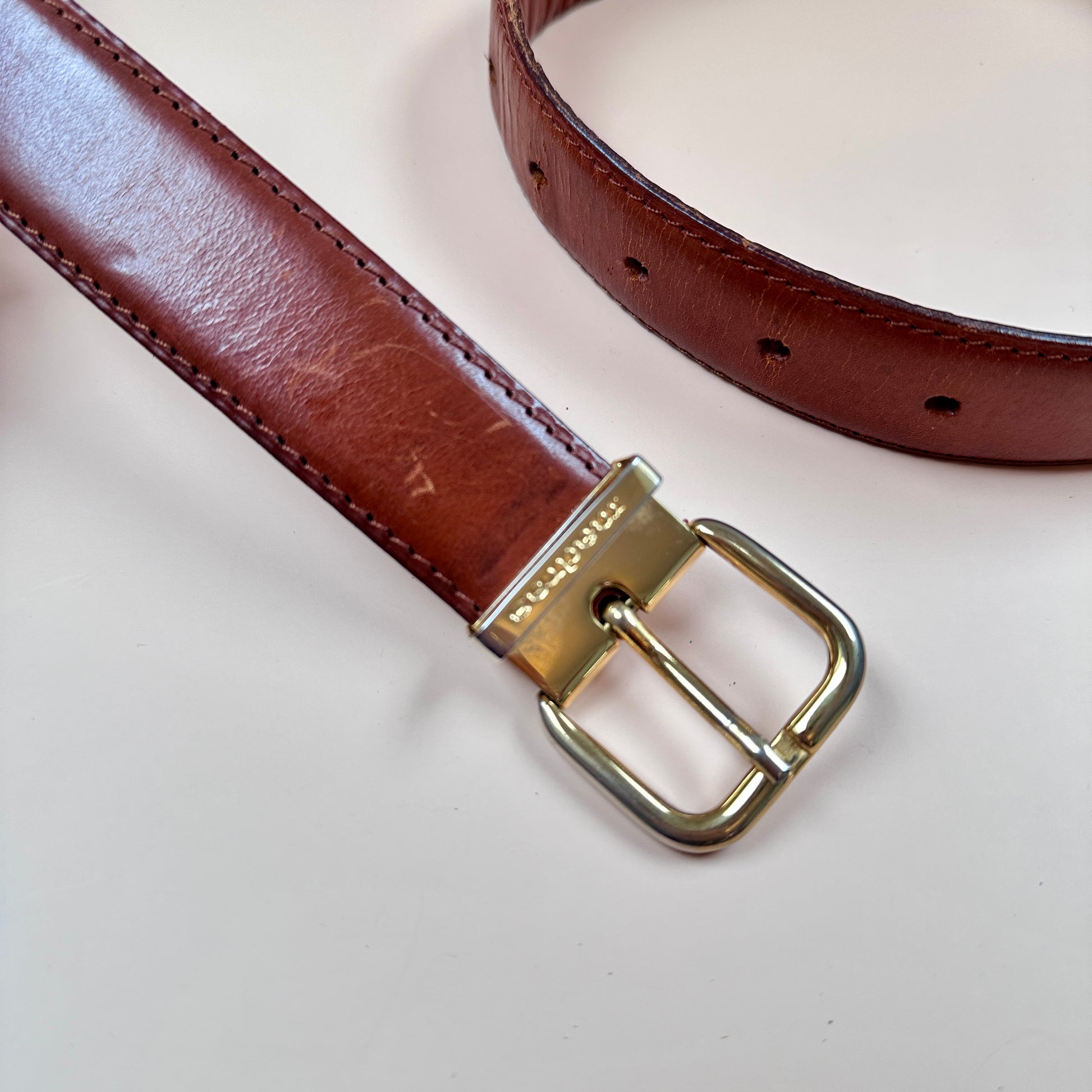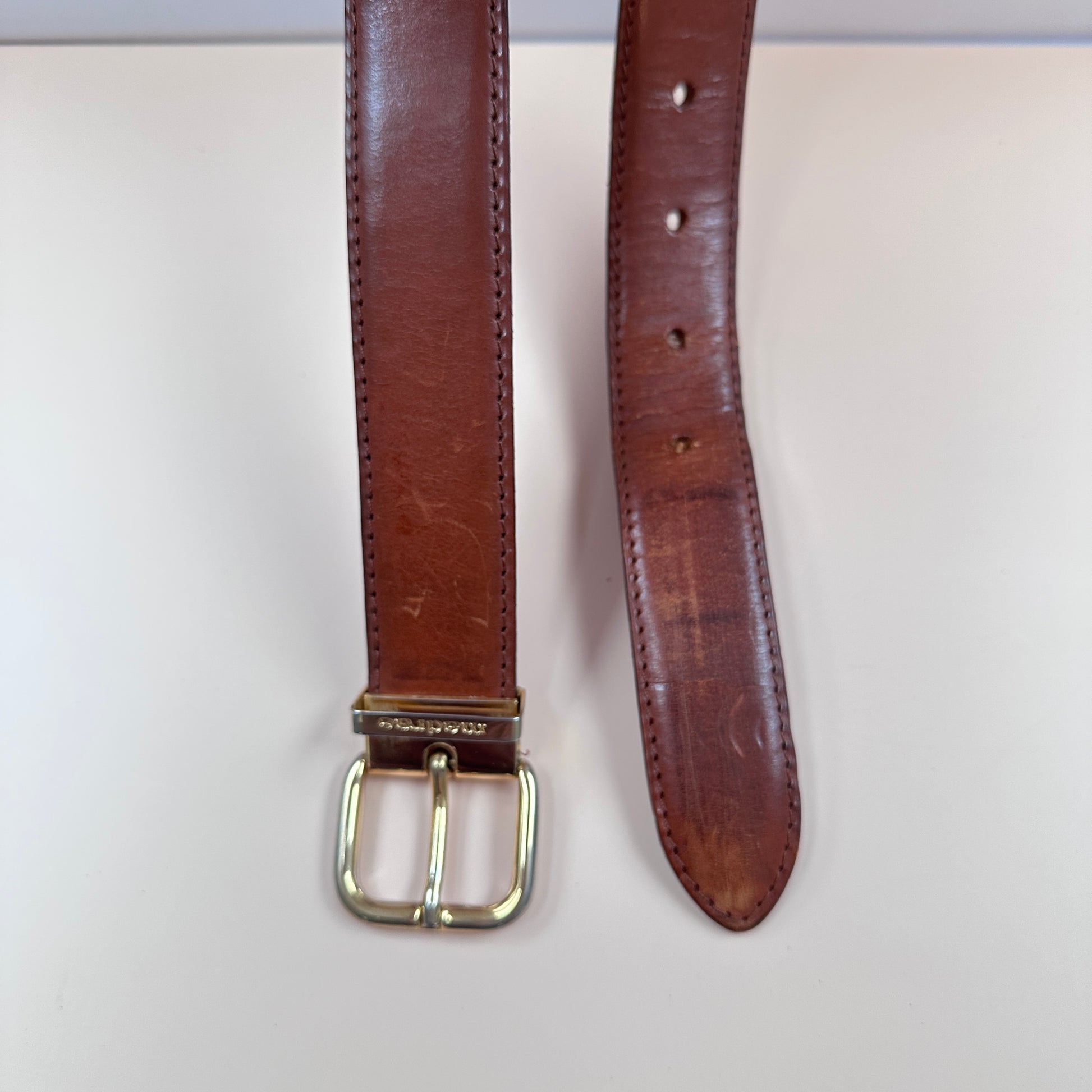 Madras vintage brown leather belt - XS