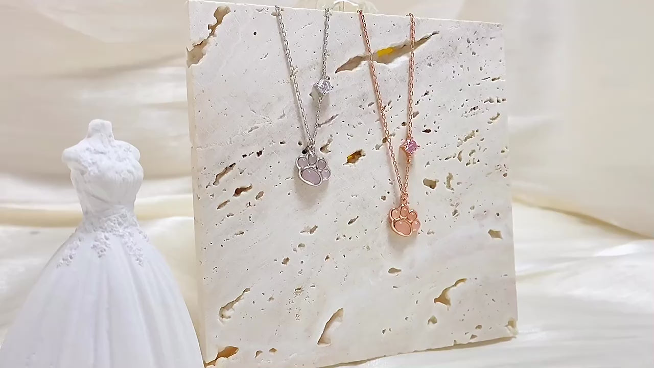 Purrfect Pawprint Rose Gold Plated Sterling Silver Cat Necklace