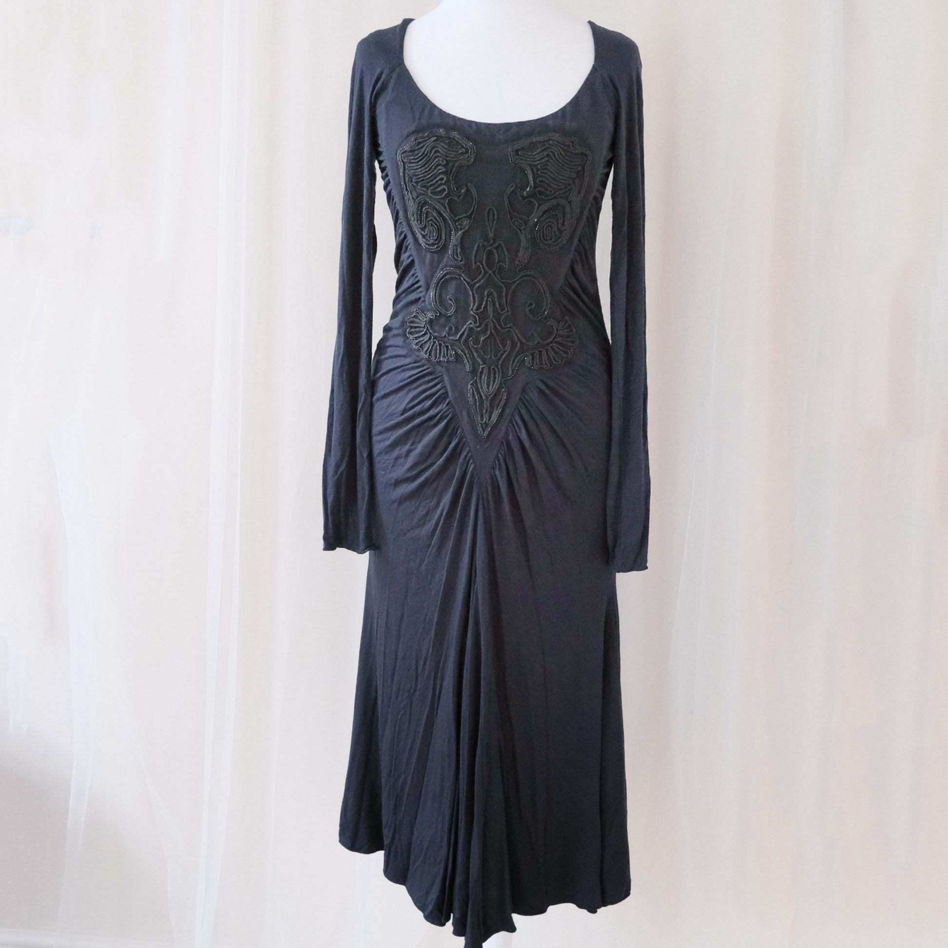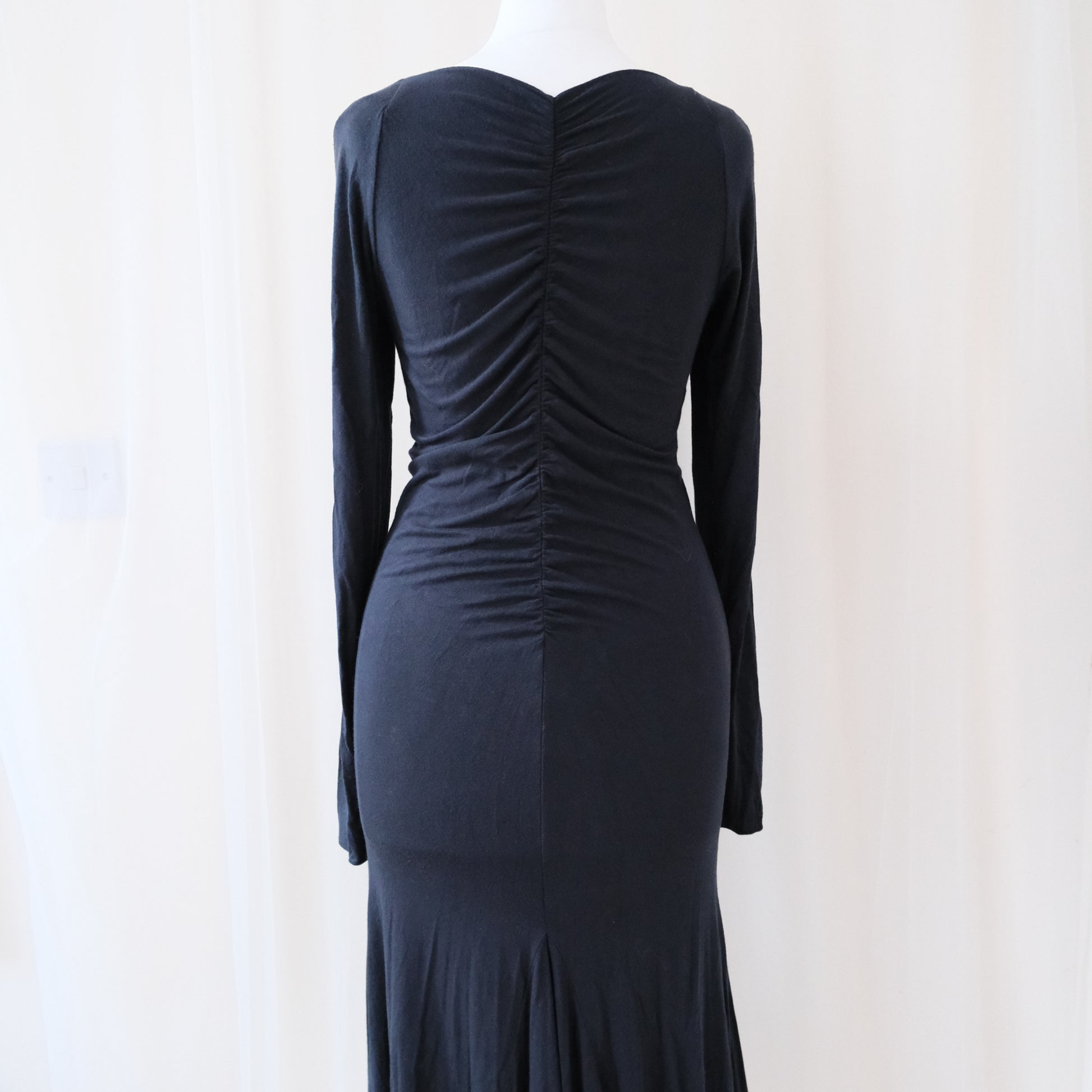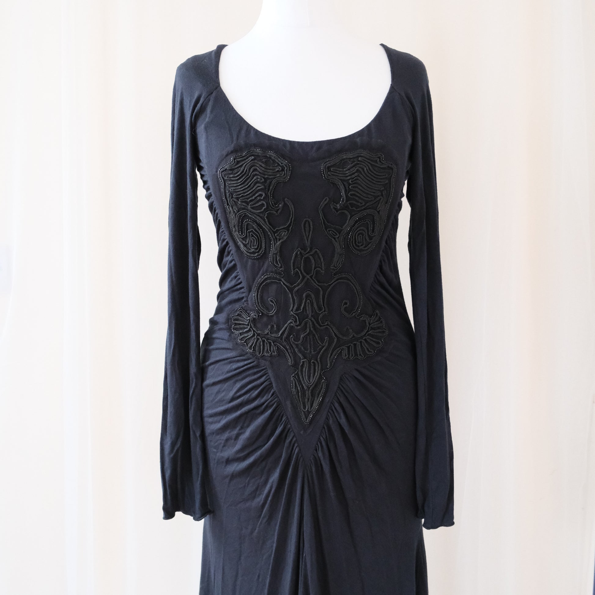 Vintage Class Roberto Cavalli Black Long Sleeve Dress – Ruched Gothic Midi